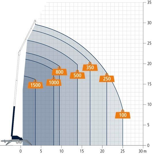 - Arbeitshöhe bis Ausleger: 22,00 m